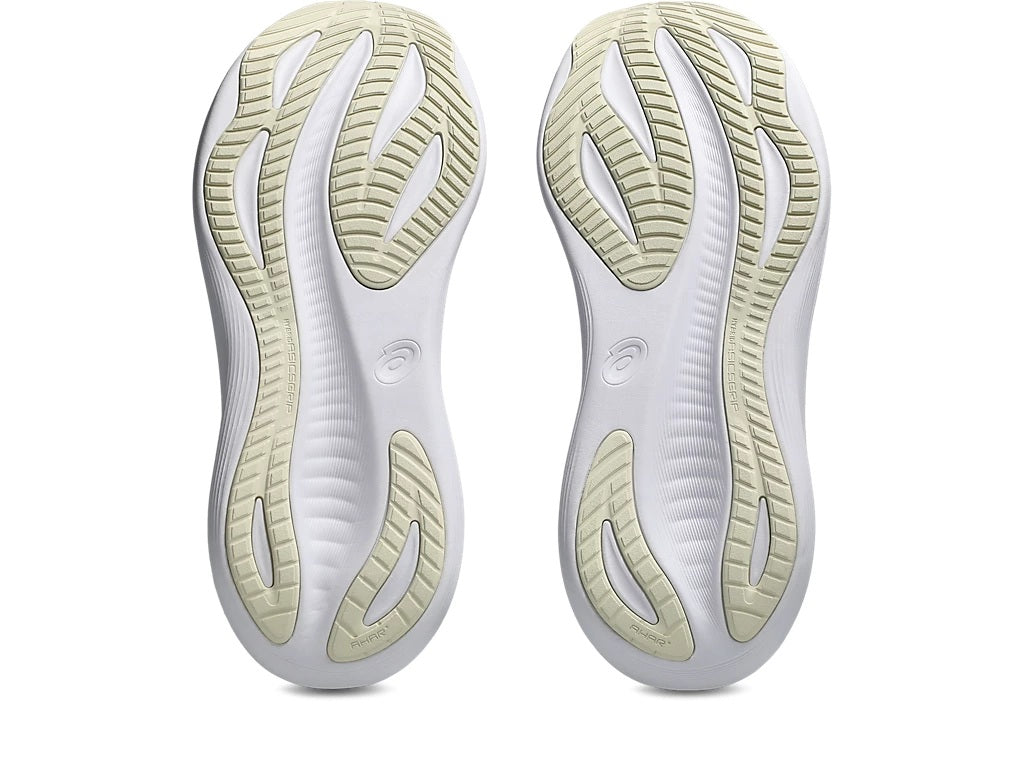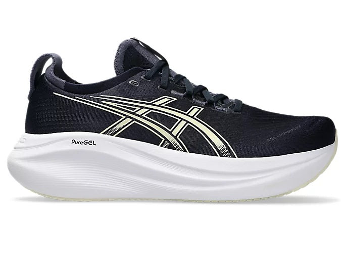 The GEL-NIMBUS™ 27 shoe's soft cushioning properties help you feel like you're landing on clouds. This design is revamped to help create a softer and smoother running experience, providing dynamic comfort for the duration of your run to help you run further, longer. Suitable for every day, easy runs for all runners looking for a highly cushioned, neutral shoe. A soft engineered jacquard mesh upper comfortably wraps your foot while supplying advanced ventilation. Additionally, the knit tongue and collar help provide a soft and supportive feel. By using FF BLAST™ PLUS ECO cushioning, this trainer creates a lighter and softer cushioning experience. Lastly, HYBRID ASICSGRIP™ outsole combines ASICSGRIP™ rubber and AHARPLUS™ materials to help provide advanced grip for various terrains and advanced durability.