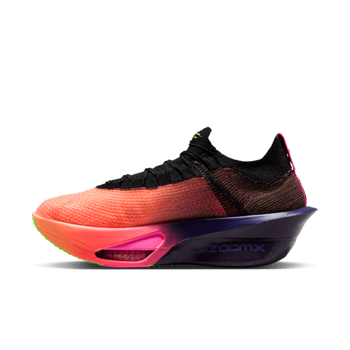 Fine-tuned for marathon speed, the Alphafly 3 helps push you beyond what you thought possible. Three innovative technologies power your run: a double dose of Air Zoom units helps launch you into your next step; a full-length carbon-fibre plate helps propel you forwards with ease; and a heel-to-toe ZoomX foam midsole helps keep you fresh from start to 26.2. Time to leave your old personal records in the dust.
