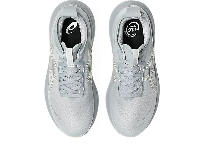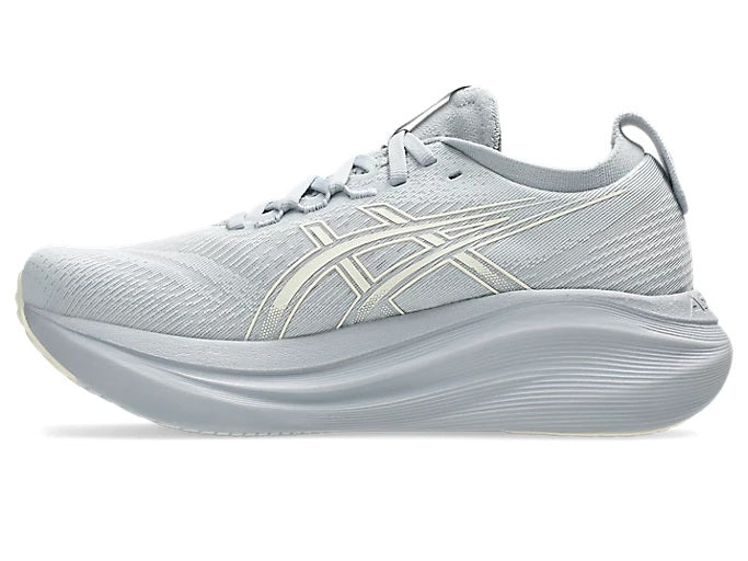 The GEL-NIMBUS™ 27 shoe's soft cushioning properties help you feel like you're landing on clouds. This design is revamped to help create a softer and smoother running experience, providing dynamic comfort for the duration of your run to help you run further, longer. Suitable for every day, easy runs for all runners looking for a highly cushioned, neutral shoe. A soft engineered jacquard mesh upper comfortably wraps your foot while supplying advanced ventilation. Additionally, the knit tongue and collar help provide a soft and supportive feel. By using FF BLAST™ PLUS ECO cushioning, this trainer creates a lighter and softer cushioning experience. Lastly, HYBRID ASICSGRIP™ outsole combines ASICSGRIP™ rubber and AHARPLUS™ materials to help provide advanced grip for various terrains and advanced durability.
