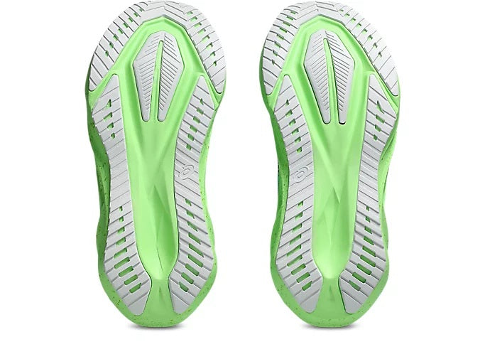 The trampline outsole geometry is updated, for a more energetic toe off and improved grip.