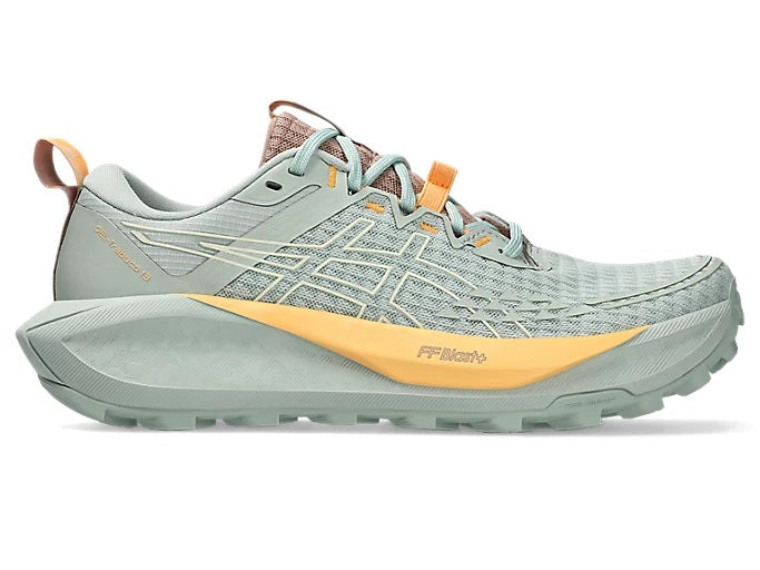 The GEL-TRABUCO™ 13 shoe is a versatile trail shoe suited for the trail runner who is looking for superior traction and added stability on technical off-road terrain. A lightweight and energetic foam technology called FF BLAST™ PLUS ECO cushioning is strategically positioned in the midsole. This helps create a soft feel with advanced impact absorption underfoot. Its rock protection plate features a flexible construction that shields your feet from sharp rocks and rugged terrain. ASICSGRIP™ outsole rubber provides advanced grip for various terrains.