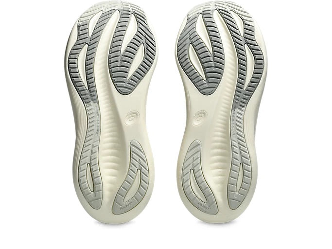 The GEL-NIMBUS™ 27 shoe's soft cushioning properties help you feel like you're landing on clouds. This design is revamped to help create a softer and smoother running experience, providing dynamic comfort for the duration of your run to help you run further, longer. Suitable for every day, easy runs for all runners looking for a highly cushioned, neutral shoe. A soft engineered jacquard mesh upper comfortably wraps your foot while supplying advanced ventilation. Additionally, the knit tongue and collar help provide a soft and supportive feel. By using FF BLAST™ PLUS ECO cushioning, this trainer creates a lighter and softer cushioning experience. Lastly, HYBRID ASICSGRIP™ outsole combines ASICSGRIP™ rubber and AHARPLUS™ materials to help provide advanced grip for various terrains and advanced durability.