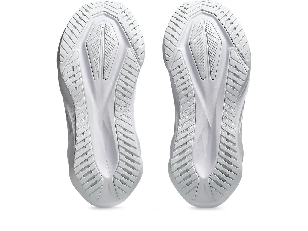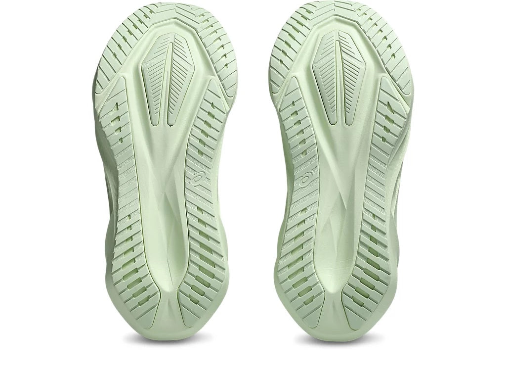 The trampline outsole geometry is updated, for a more energetic toe off and improved grip.