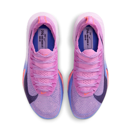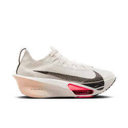 Nike Alphafly 3 Women's Road Racing Shoes Fine-tuned for marathon speed, the Alphafly 3 helps push you beyond what you thought possible. Three innovative technologies power your run: A double dose of Air Zoom units helps launch you into your next step; a full-length carbon fibre plate helps propel you forward with ease; and a heel-to-toe ZoomX foam midsole helps keep you fresh from start to 42.2. Time to leave your old personal records in the dust.