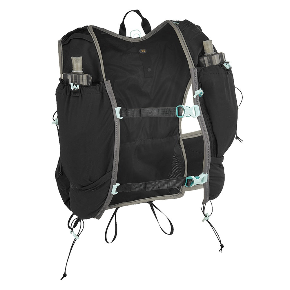 More capacity for long days in the mountains. The Mountain Vesta 6.0 boasts 13L of storage volume featuring a rear weather resistant main pocket with clamshell opening and large rear compartment spacious enough for a 2L reservoir. Rear zippered lat pockets are accessible while running. On the front of the body, users will enjoy several pockets, including a zippered weather resistant pocket for a phone. Also, pockets for two (included) Body Bottle 500's.